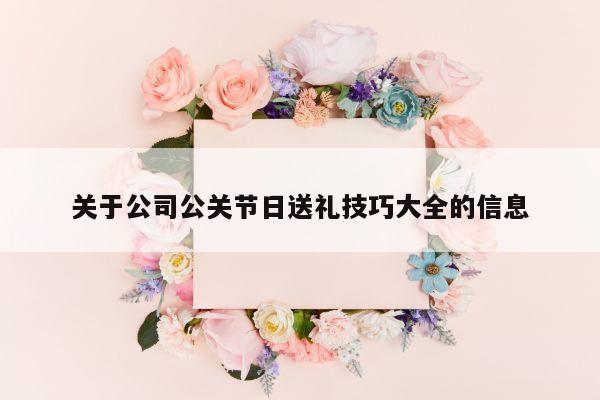 本篇文章给大家谈谈公司公关节日送礼技巧大全,以及对应的知识点,希望对各位有所帮助!