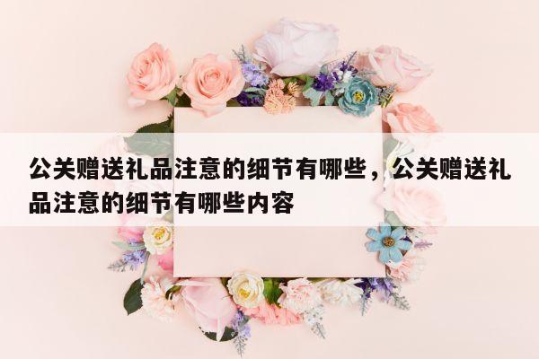 本篇文章给大家谈谈公关赠送礼品注意的细节有哪些,以及公关赠送礼品注意的细节有哪些内容对应的知识点,希望对各位有所帮助!