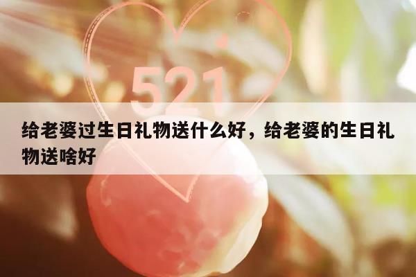 给老婆过生日可以送以下几种东西:老婆过生可以送老婆一束红玫瑰,女生都喜欢漂亮的鲜花,送红玫瑰也能很好的表达爱意,既浪漫又有情调。送巧克力给老婆当做生日礼物,甜甜蜜蜜。